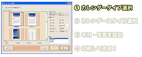◆初心者も安心! わずか3ステップ9万通りのカレンダーが作れる