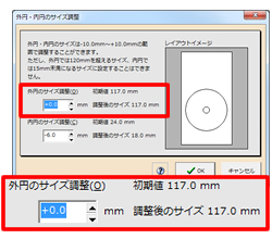 外円/内円のサイズ調整や、ディスクの“フチぼかし”機能