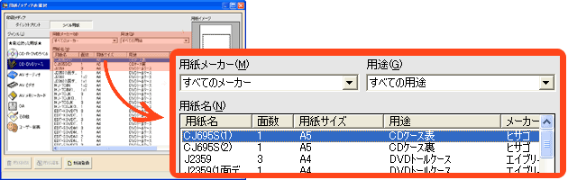 まず、使用するDVDトールケースの用紙名を選択します。