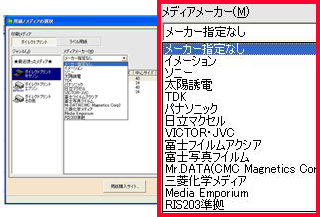 各メディアメーカーの推奨領域の選択方式と、メディアサイズのカスタム設定機能を2つの方式から選択可能です。