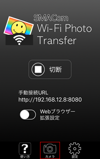 ■カメラが起動しない場合(あるいはカメラアイコンが表示されない場合) スマートフォン側のカメラアイコンは写真の転送が可能な時のみ表示されます。